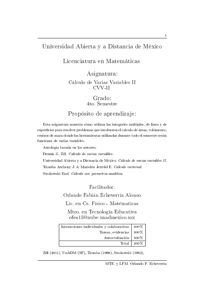 Universidad Abierta y a Distancia de México. Cálculo de varias variables II.