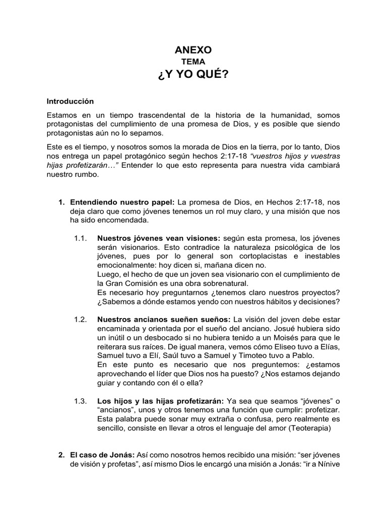 1.1. Nuestros jóvenes vean visiones: según esta promesa, los jóvenes