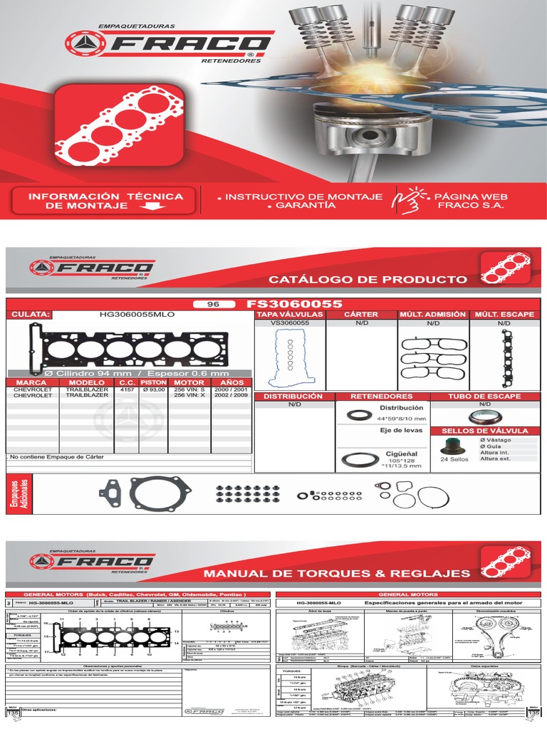 FRACO HG-3060055-MLO Motor 256 Vin S (24 Valv.) / DOHC Año 02-06 4.200 c.c. 256 pulg3