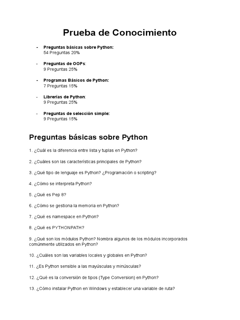 - Preguntas básicas sobre Python: