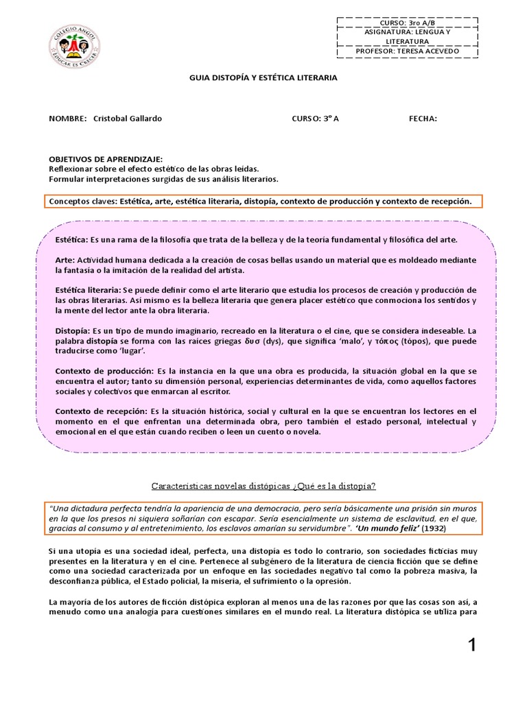 GUIA DISTOPÍA Y ESTÉTICA LITERARIA