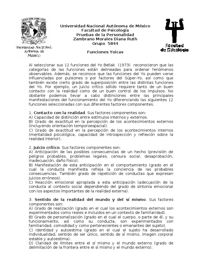 observables. Además, se reconoce que las funciones del Yo pueden verse