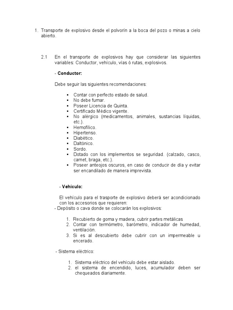 2.1 En el transporte de explosivos hay que considerar las siguientes