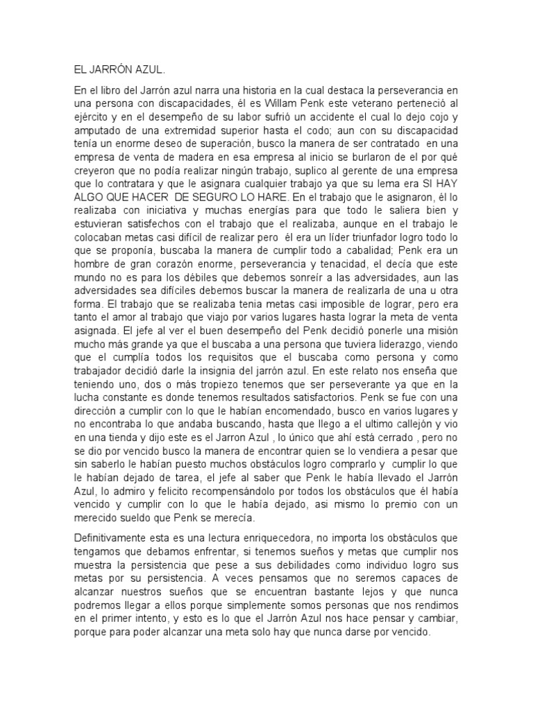 En el libro del Jarrón azul narra una historia en la cual destaca la perseverancia en