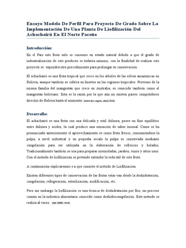 Ensayo Modelo De Perfil Para Proyecto De Grado Sobre La