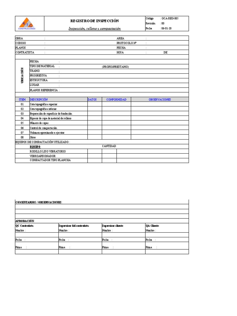 QC Contratista: Supervisor del contratista: Supervisor cliente: QA Cliente: