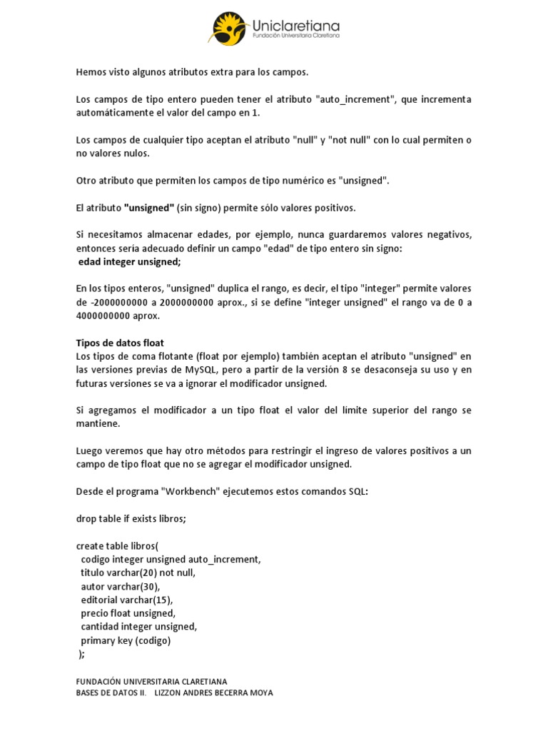 Otro atributo que permiten los campos de tipo numérico es "unsigned".