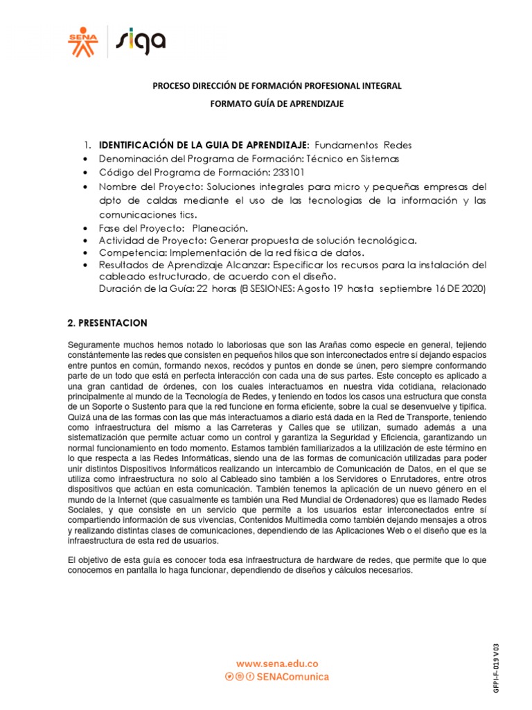 1. IDENTIFICACIÓN DE LA GUIA DE APRENDIZAJE: Fundamentos Redes