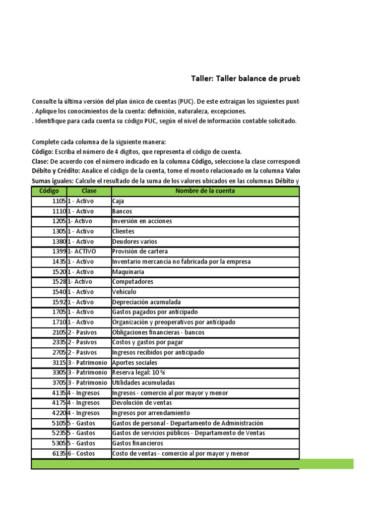. Identifique para cada cuenta su código PUC, según el nivel de información contable solicitado.