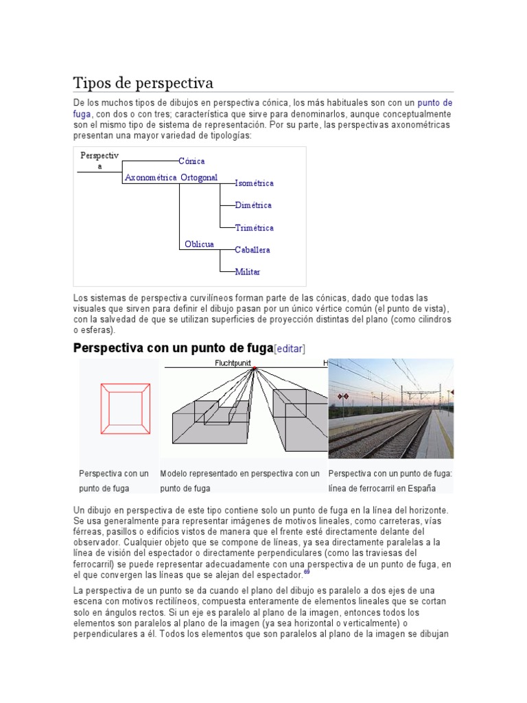 ferrocarril) se puede representar adecuadamente con una perspectiva de un punto de fuga, en