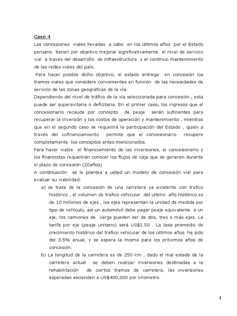 A continuación se le plantea a usted un modelo de concesión vial para