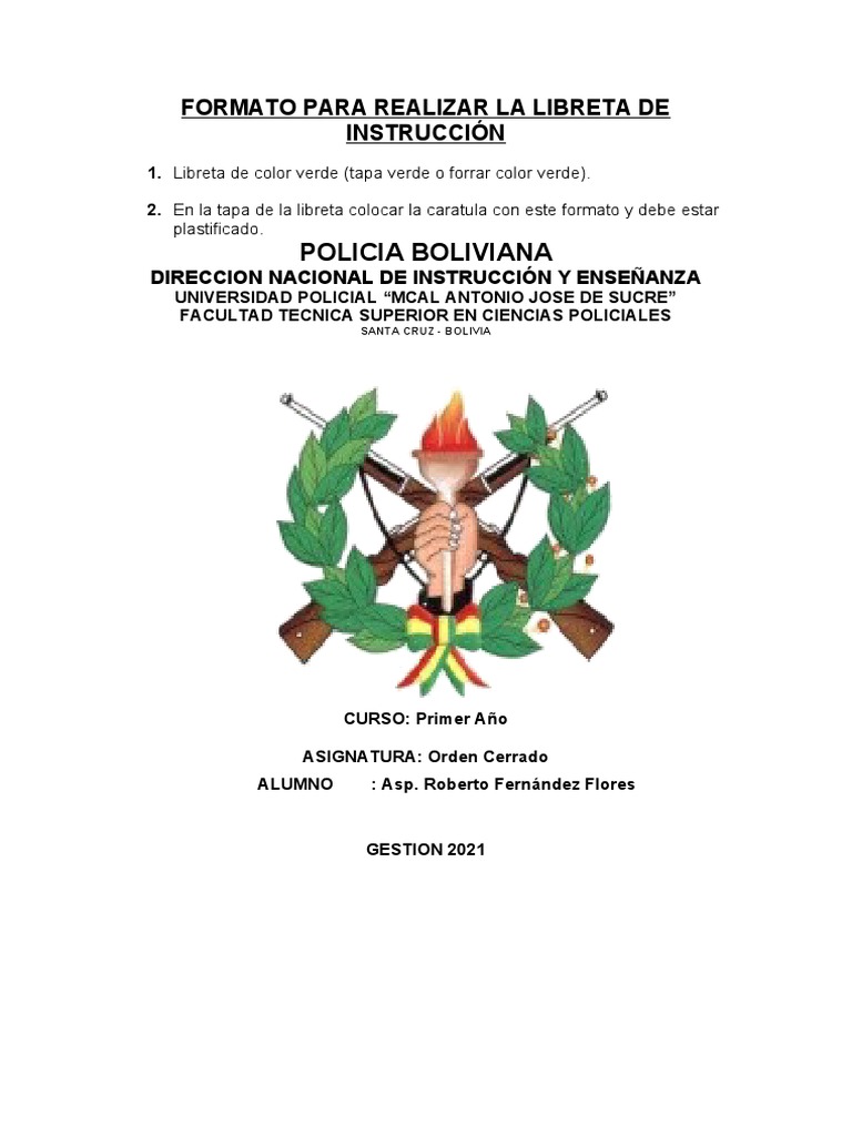 “LIBRETA DE INSTRUCCIÓN POLICIAL DE ORDEN CERRADO”