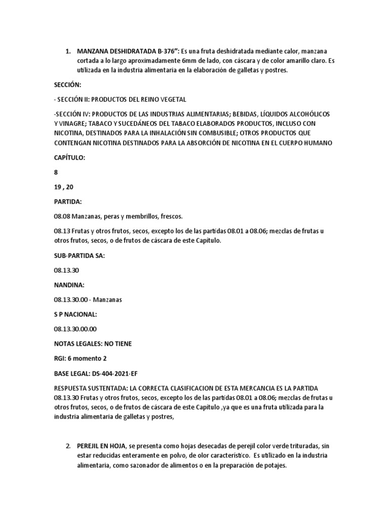 MANZANA DESHIDRATADA B-376”: Es una fruta deshidratada mediante calor, manzana