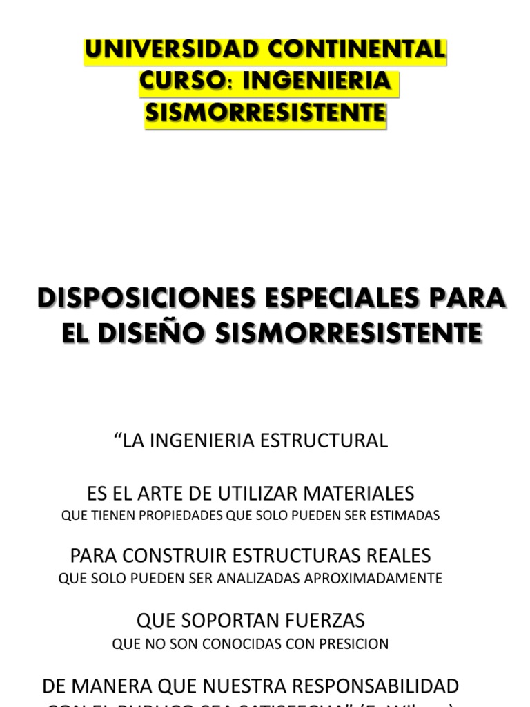 • “… La experiencia obtenida en muchos sismos, muestra que