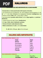 bromuros y yoduros, que son raros. Los fluoruros suelen ser minerales de origen