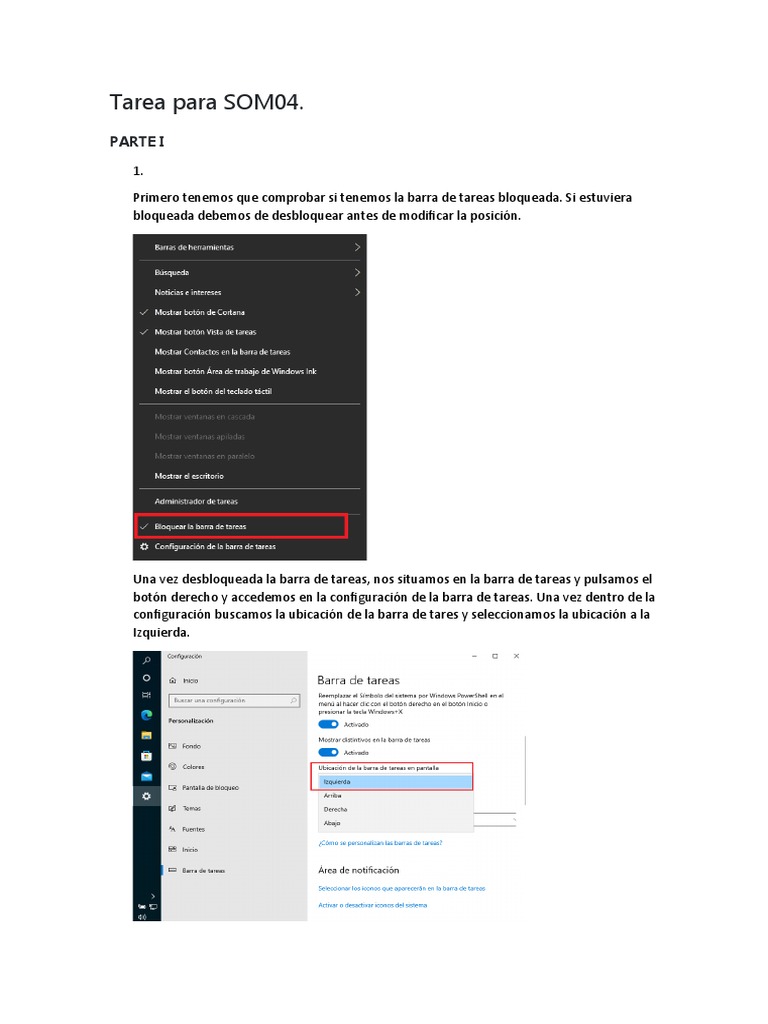 configuración buscamos la ubicación de la barra de tares y seleccionamos la ubicación a la