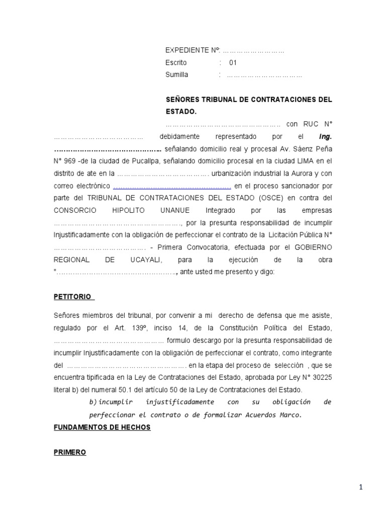 SEÑORES TRIBUNAL DE CONTRATACIONES DEL