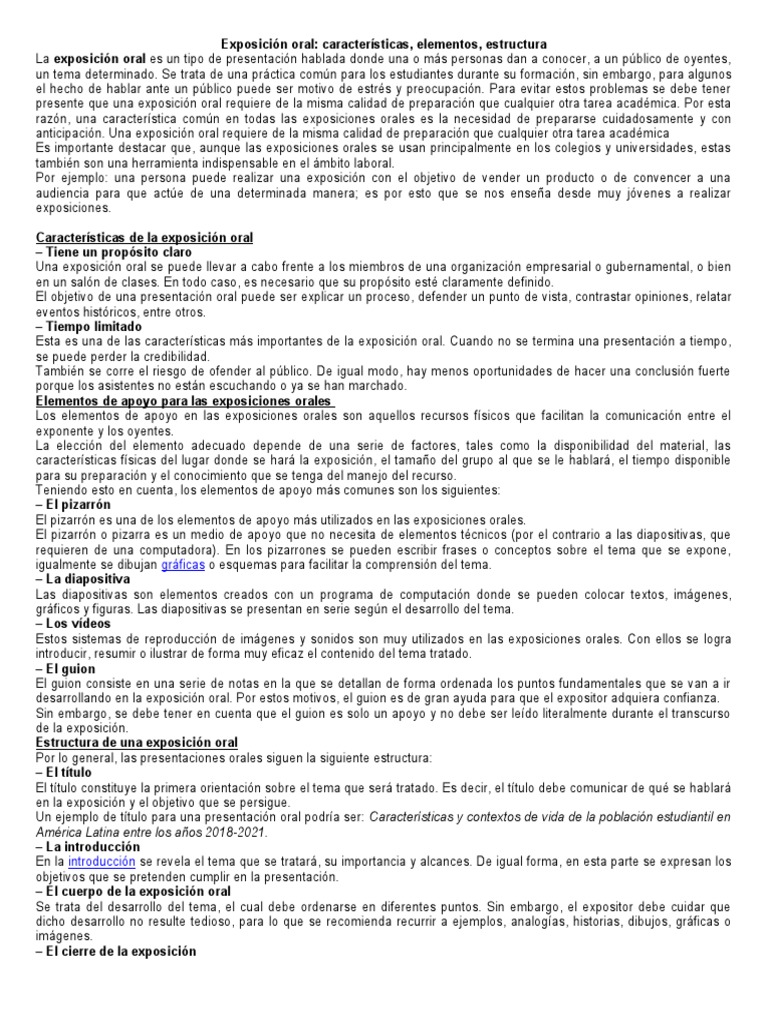 Características de la exposición oral