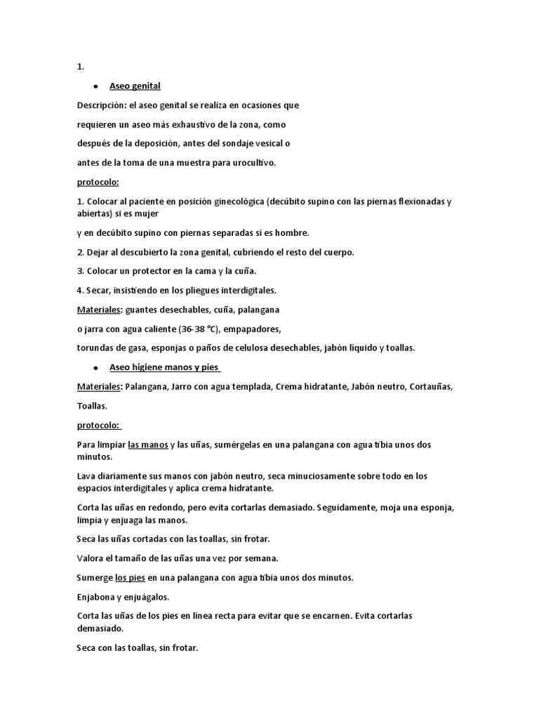 Descripción: el aseo genital se realiza en ocasiones que
