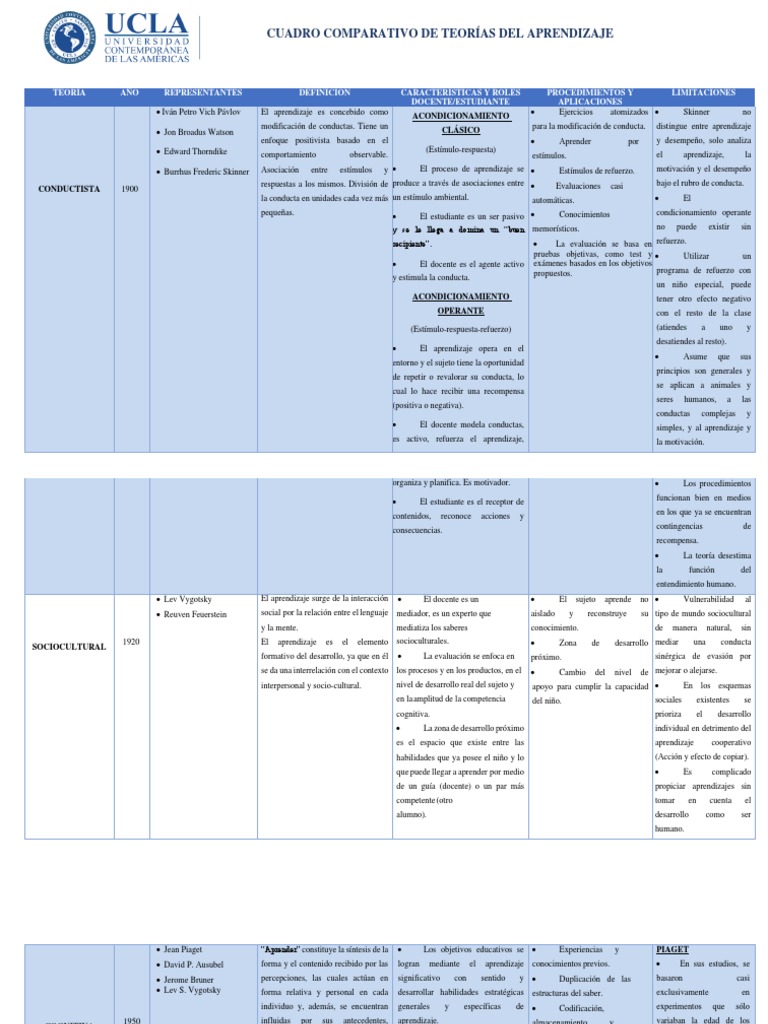 CUADRO COMPARATIVO DE TEORÍAS DEL APRENDIZAJE