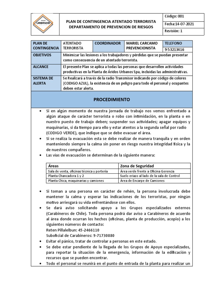 PLAN DE CONTINGENCIA ATENTADO TERRORISTA