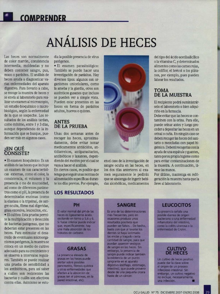 análisis de las heces que incluye vaya a hacer el análisis . sangre oculta en las heces, en la muestra . A continuación, lá-
