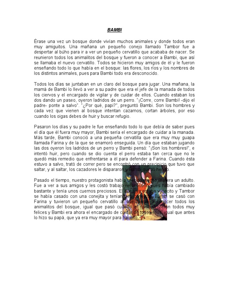 dos dando un paseo, oyeron ladridos de un perro. “¡Corre, corre Bambi! -dijo el