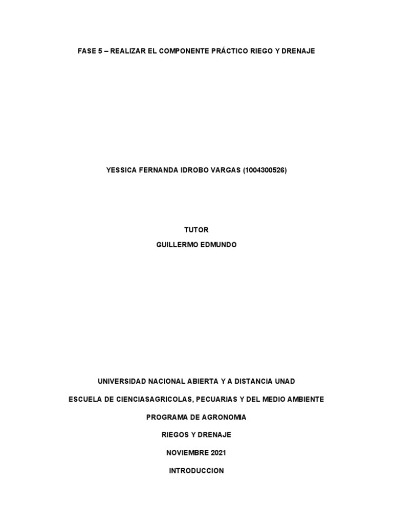 FASE 5 – REALIZAR EL COMPONENTE PRÁCTICO RIEGO Y DRENAJE