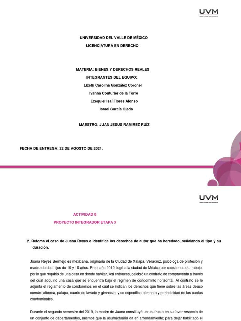 2. Retoma el caso de Juana Reyes e identifica los derechos de autor que ha heredado, señalando el tipo y su