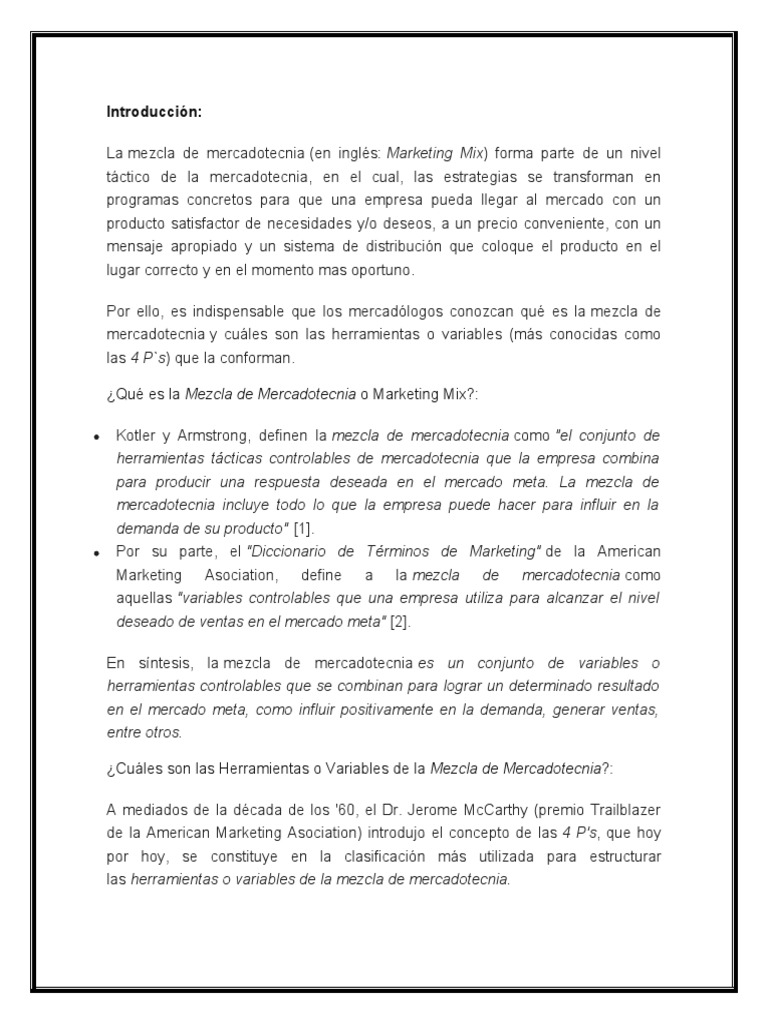 de la American Marketing Asociation) introdujo el concepto de las 4 P's, que hoy