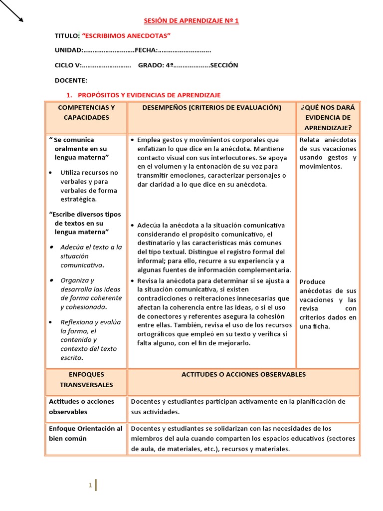 SESIÓN DE APRENDIZAJE Nº 2