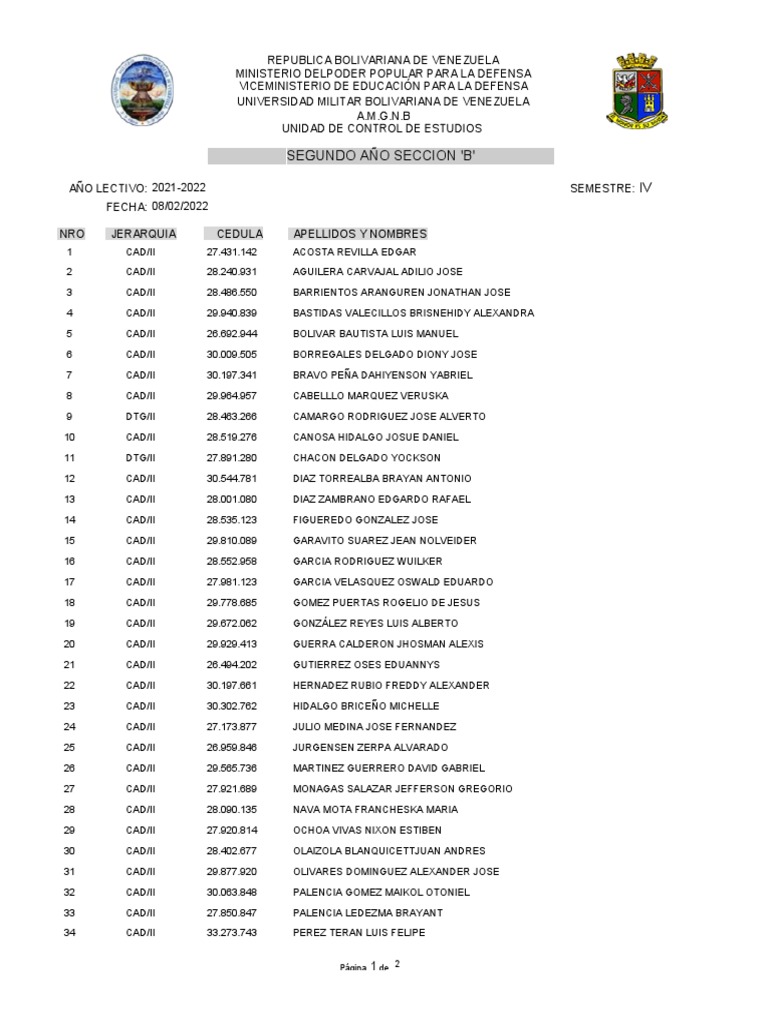 34 CAD/II 33.273.743 PEREZ TERAN LUIS FELIPE