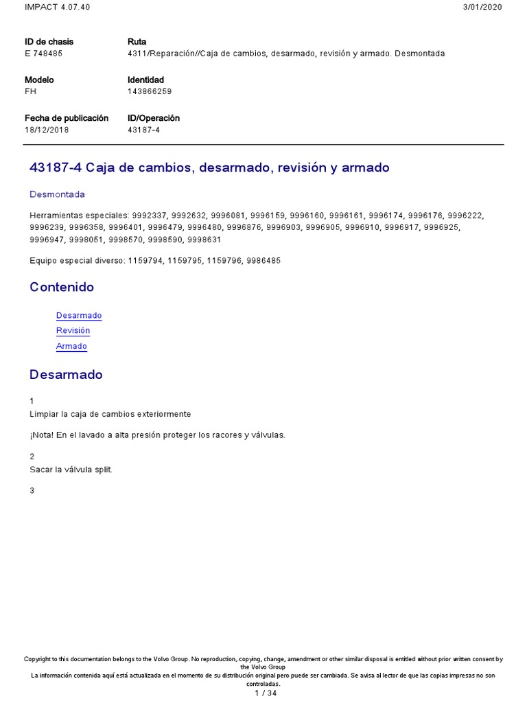 E 748485 4311/Reparación//Caja de cambios, desarmado, revisión y armado. Desmontada
