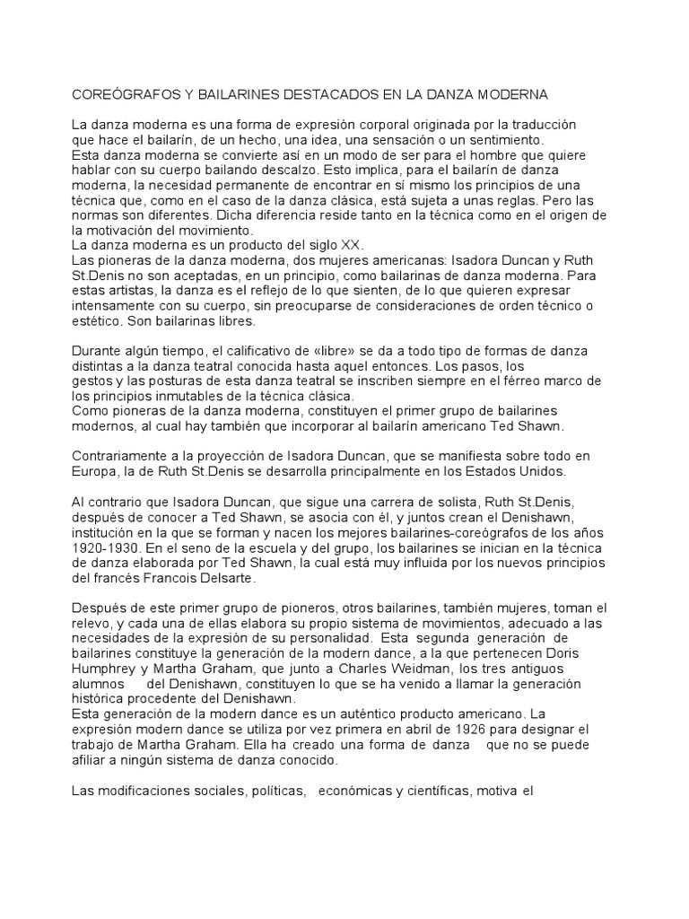 COREÓGRAFOS Y BAILARINES DESTACADOS EN LA DANZA MODERNA