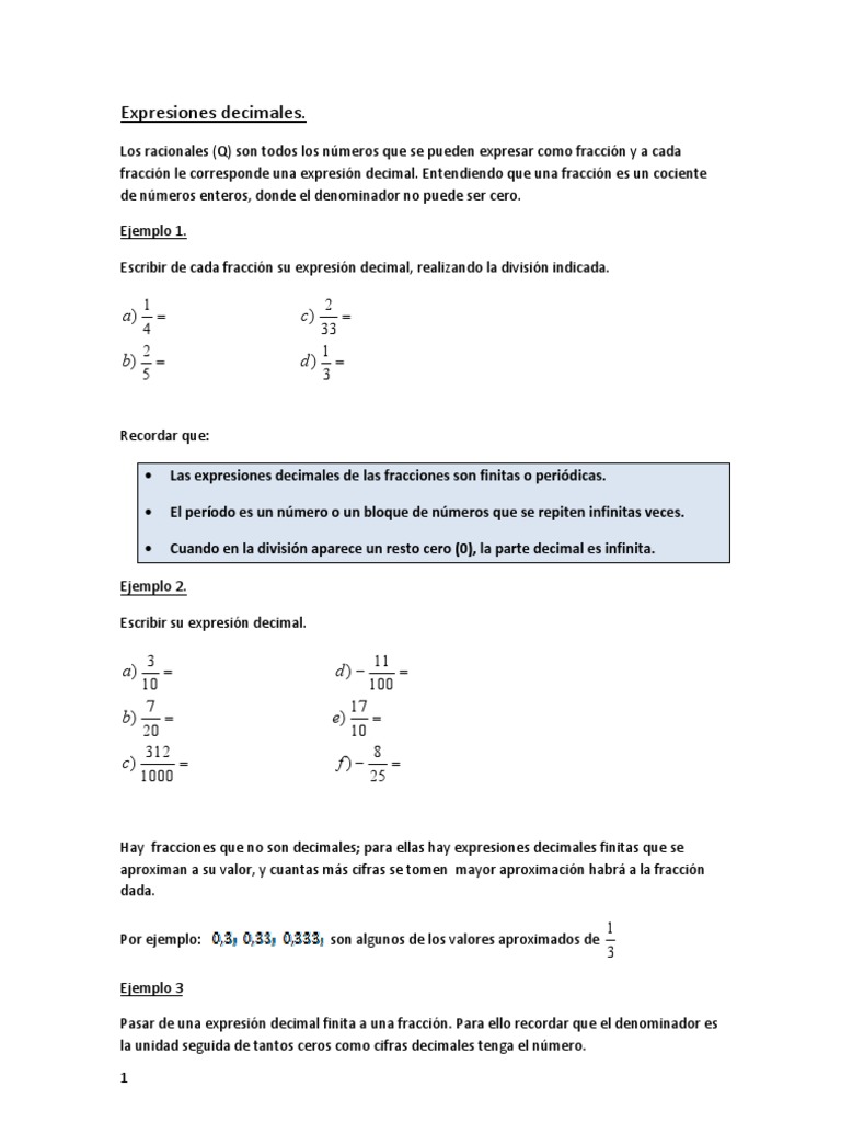 fracción le corresponde una expresión decimal. Entendiendo que una fracción es un cociente