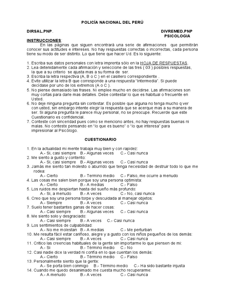conocer sus actitudes e intereses. No hay respuestas correctas o incorrectas, cada persona