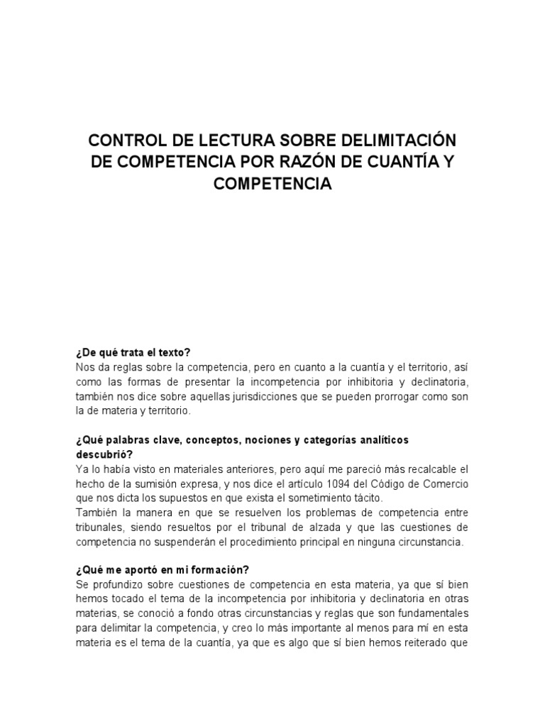 CONTROL DE LECTURA SOBRE DELIMITACIÓN