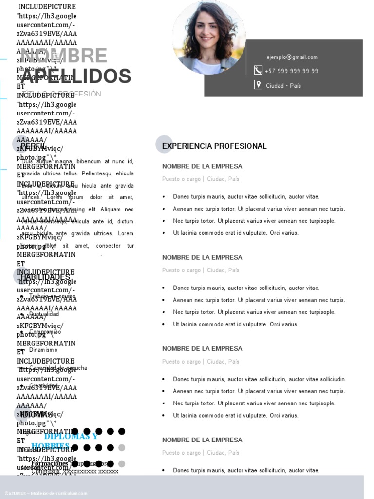 ©Estos ejemplos de hoja de vida gratuitos son propiedad de Azurius S.L. Puede descargarlos y modificarlos sin ningún problema, siempre y