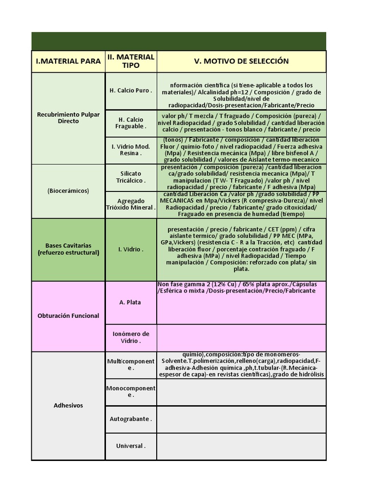 mecánicas(RC,RT,ME,Dureza,desgaste),Carga,Radiopacidad