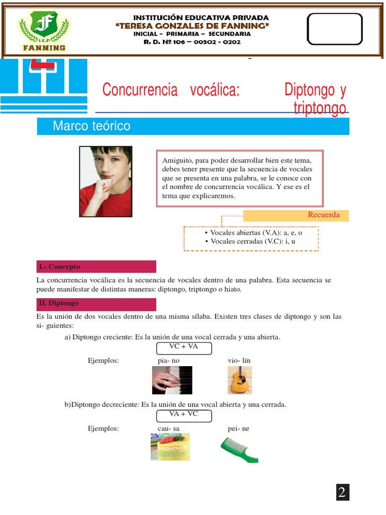2 Concurrencia vocálica: Diptongo y