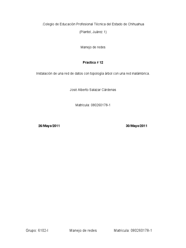 Grupo: 6102-I Manejo de redes Matricula: 080260178-1