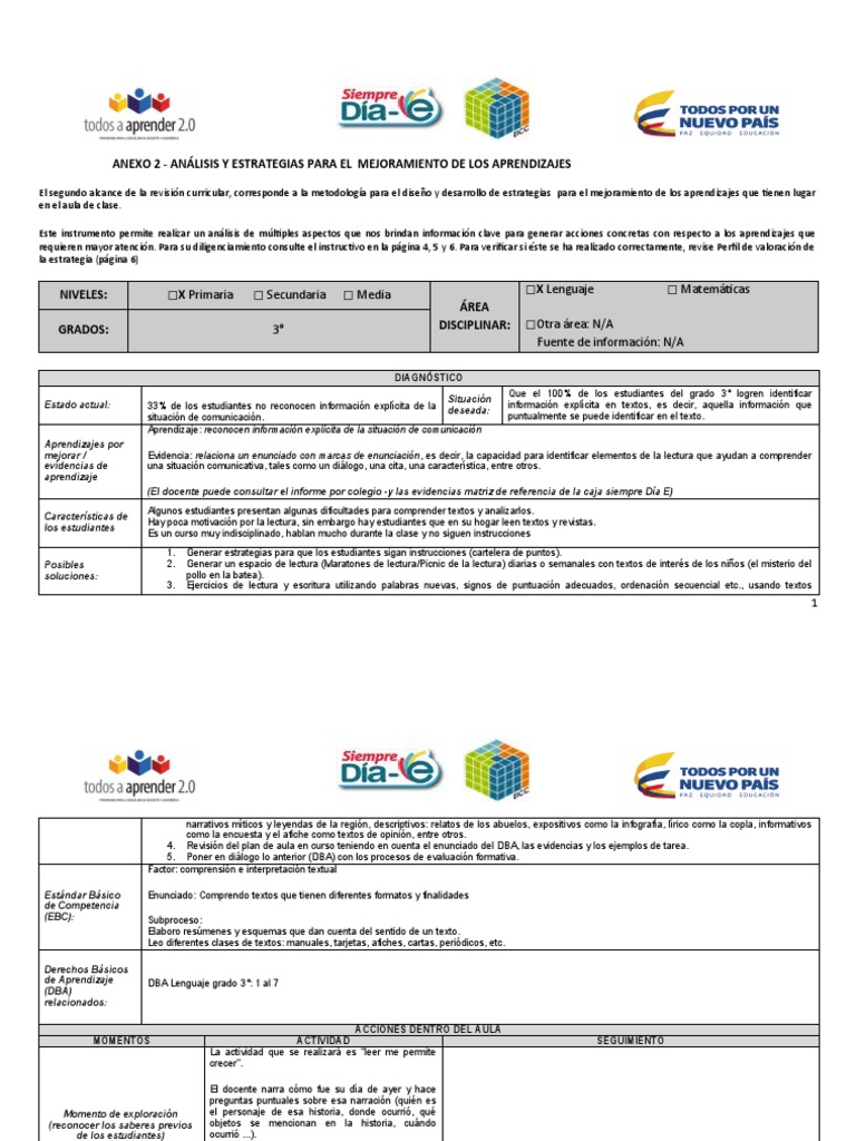 ANEXO 2 - ANÁLISIS Y ESTRATEGIAS PARA EL MEJORAMIENTO DE LOS APRENDIZAJES