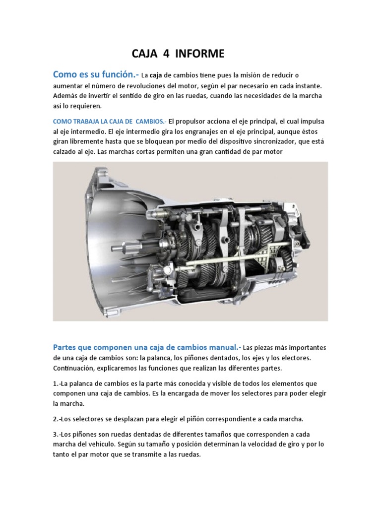 de una caja de cambios son: la palanca, los piñones dentados, los ejes y los electores.