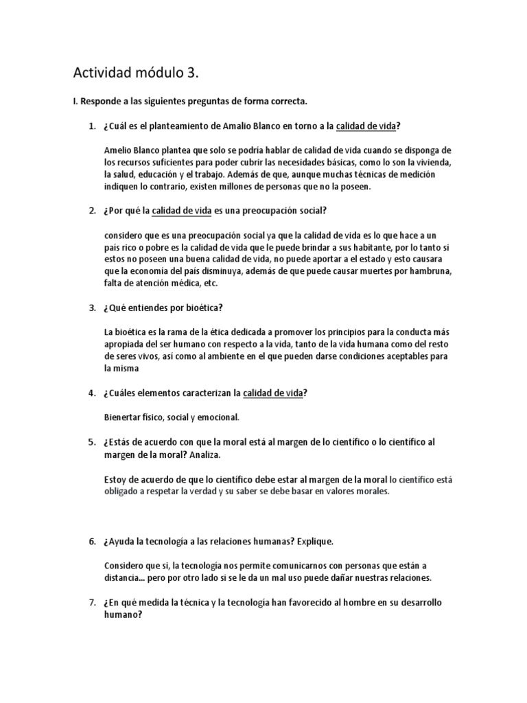 1. ¿Cuál es el planteamiento de Amalio Blanco en torno a la calidad de vida?