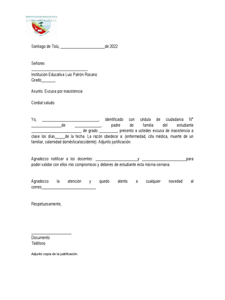 _________________________ de grado _________, presento a ustedes excusa de inasistencia a