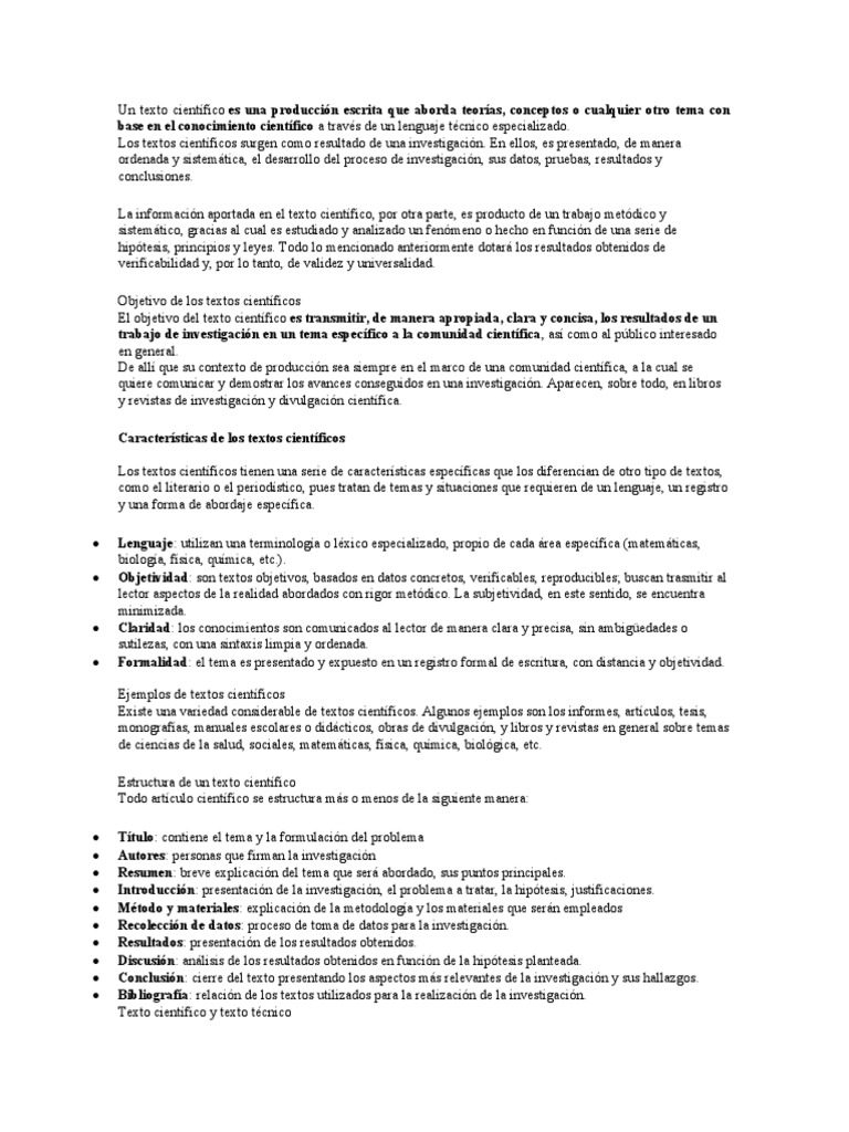 Los textos científicos tienen una serie de características específicas que los diferencian de otro tipo de textos,