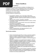 por el público en general que no es experto en el tema. El texto científico, en cambio, no se dirige al público