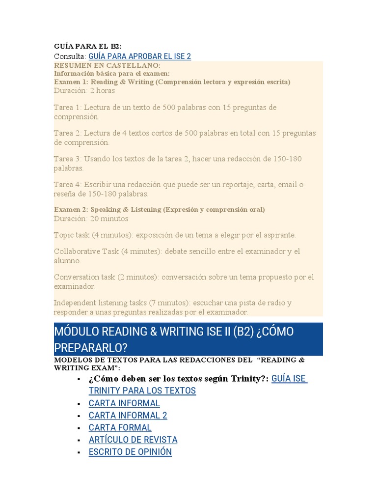 ¿Cómo deben ser los textos según Trinity?: GUÍA ISE