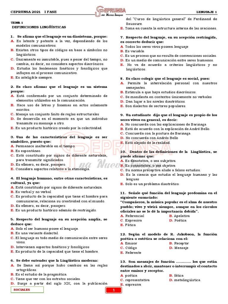 CEPRUNSA 2021 I FASE LENGUAJE 1