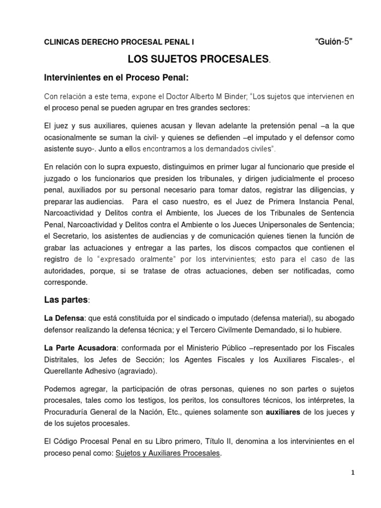 CLINICAS DERECHO PROCESAL PENAL I “Guión-5”